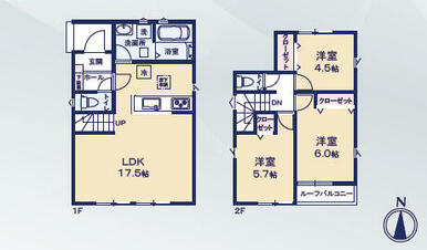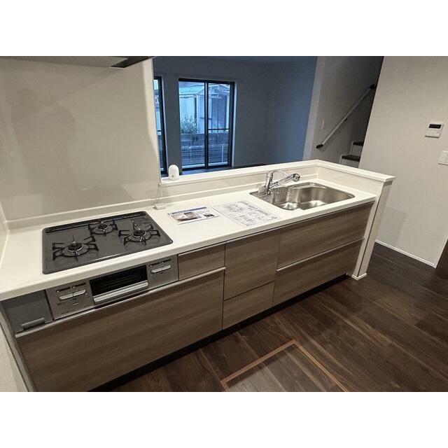 | 設備 | システムキッチン 床下収納 モニタ付インターホン ディンプルキー シャッター雨戸 複層ガラス 3口以上コンロ 浴室乾燥機 都市ガス ルーフバルコニー 人感センサー付照明 火災警報器(報知機) トイレ2ヶ所 | ||